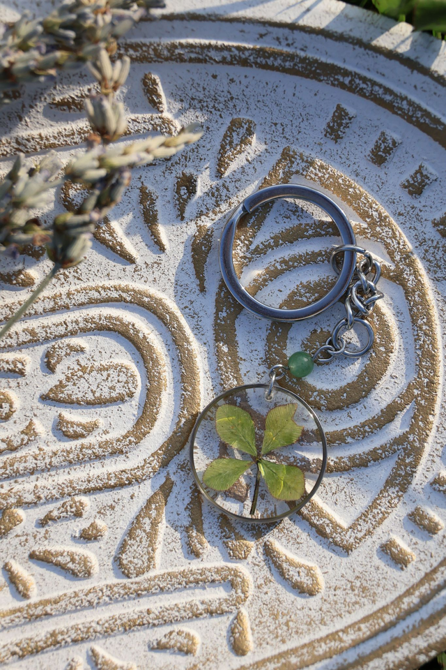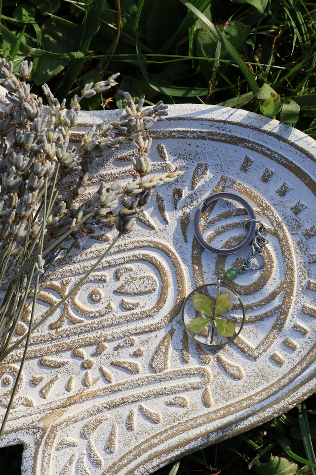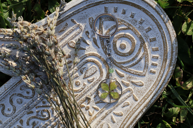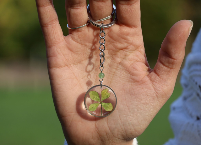Chaque création est unique : la forme et la couleur des trèfles naturels peuvent varier, rendant votre porte-clé authentique et personnel.